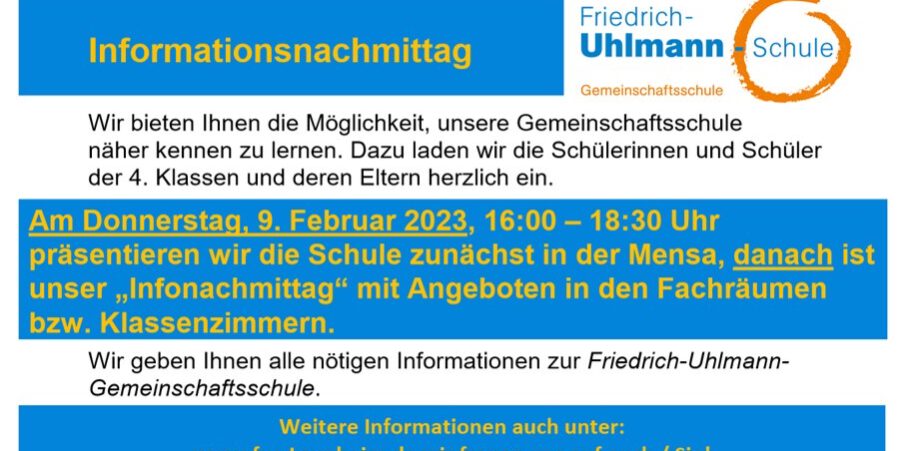 Am 09.02.2023 fand unser alljährlicher Informationsnachmittag für zukünftige Schüler der FUS und deren Familien statt. Da es endlich wieder einmal in Präsenz stattfinden konnte, war es ein voller Erfolg!
